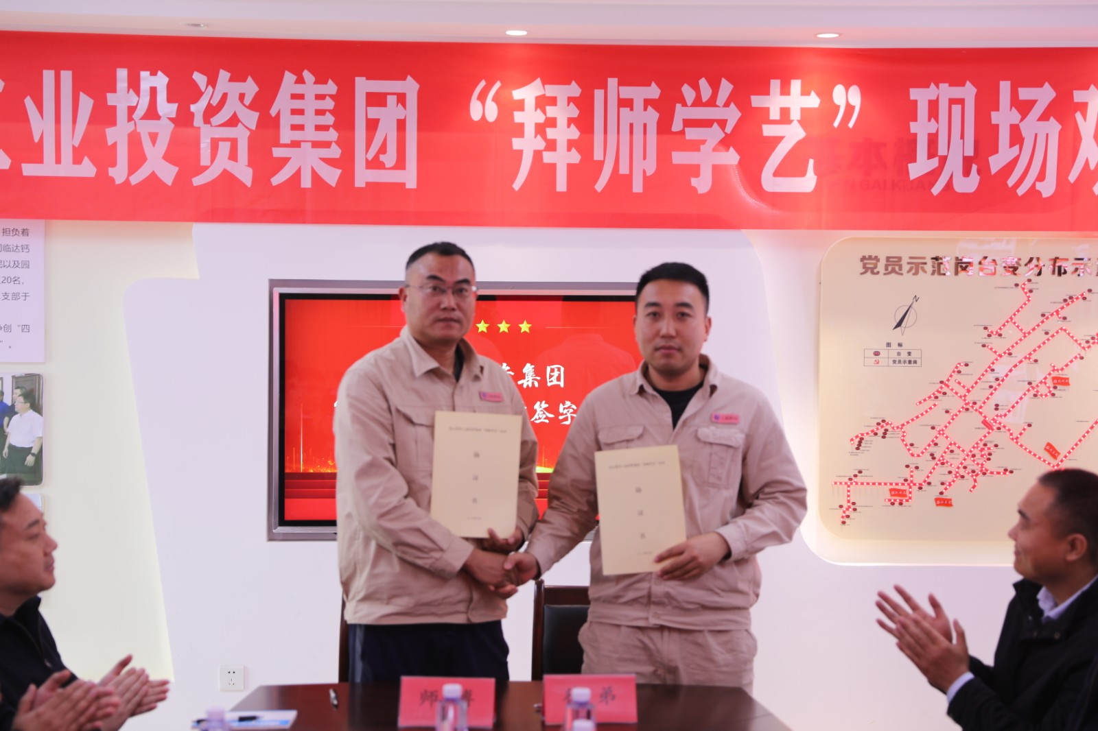 觀摩結(jié)束后,活動(dòng)進(jìn)入師徒代表交流環(huán)節(jié)。市勞模王建作為師傅代表率先發(fā)言,他結(jié)合自身帶徒經(jīng)歷,毫無保留地分享了培養(yǎng)新人的心得感悟。隨后,在全體與會(huì)人員的共同見證下,師徒雙方鄭重簽訂 "拜師學(xué)藝" 結(jié)對協(xié)議書,這一紙契約不僅是責(zé)任的傳遞,更是匠心的延續(xù)?;顒?dòng)現(xiàn)場還舉行了贈(zèng)書儀式,一本本凝聚著知識(shí)與經(jīng)驗(yàn)的書籍從師傅手中傳遞到徒弟手中,猶如一盞盞明燈,照亮了徒弟們的成長之路。