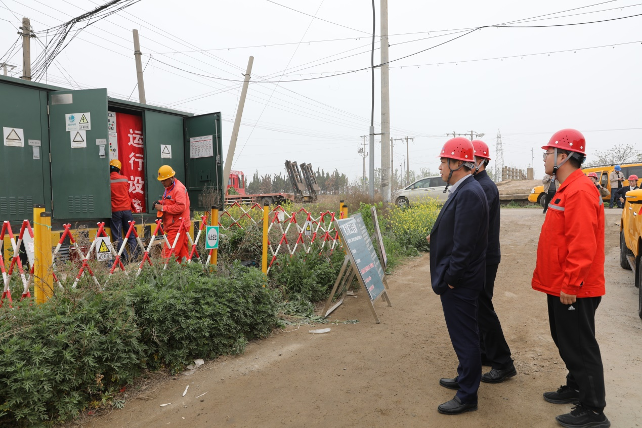 4月20日上午,公司黨委書記、總經(jīng)理宋晟曄,黨委副書記、工會(huì)主席李平一行到徐南供電所斷電施工現(xiàn)場進(jìn)行調(diào)研指導(dǎo),徐南供電所所長周國成陪同調(diào)研。