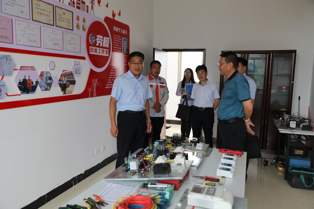 劉主席一行人來到臺北供電所參觀了剛剛建成的勞模工作室,勞模工作室的建成得到集團(tuán)領(lǐng)導(dǎo)的一致好評,會上,公司工會主席王志軍從產(chǎn)改工作、民主管理、組織建設(shè)、權(quán)益保障、職工文化等五個(gè)方面匯報(bào)了工會相關(guān)的工作,市勞模王建介紹了勞模工作室的建設(shè)情況和下一步的工作打算。