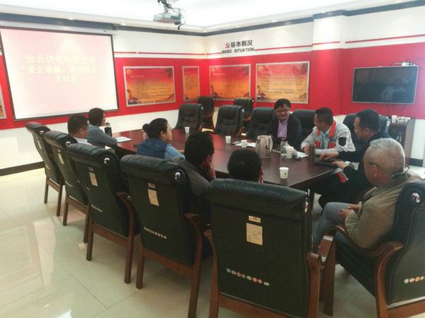 臺北供電所黨支部在5月25日召開“愛企奉獻(xiàn)、愛崗敬業(yè)”主題討論會,結(jié)合經(jīng)理助理徐磊、集團(tuán)勞模于廣兵等優(yōu)秀黨員親身講解先進(jìn)事跡,廣泛征求生產(chǎn)經(jīng)營、改革發(fā)展的好辦法、好建議,組織黨員干部直面問題、凝聚共識,為企業(yè)健康發(fā)展建言獻(xiàn)策。(錢明華)