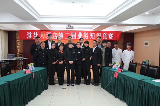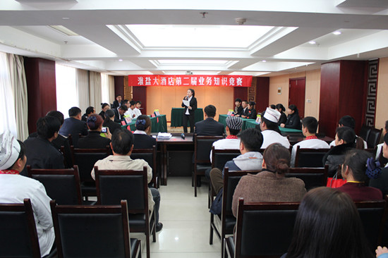 為了進(jìn)一步提高酒店全體員工安全生產(chǎn)意識以及酒店專業(yè)業(yè)務(wù)水平,淮鹽大酒店于11月19日舉行第二屆“酒店綜合知識競賽”,酒店總經(jīng)理伏運(yùn)余、副總經(jīng)理?xiàng)罘①|(zhì)檢經(jīng)理周洪近、餐飲經(jīng)理郭天麗擔(dān)任裁判,現(xiàn)場氣氛非?;钴S,競賽取得圓滿成功。