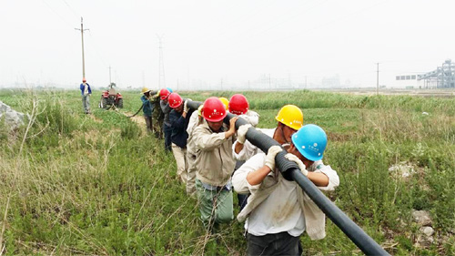 16日上午6點鐘左右,該所集合全部力量趕赴縱4路工程現(xiàn)場。在施工過程中,由于電纜線外套波紋管工作無法用機械完成,只能人工作業(yè)。該所除登高和外派作業(yè)人員外,其余人員密切配合,通力協(xié)作。他們不分工種、不計得失、不遺余力,喊著口號、邁著步子,用肩膀抗著波紋管,一步一個腳印,終于在中午12點成功將150米電纜套上波紋管。結(jié)束后才發(fā)現(xiàn)很多人的肩膀都磨出了淤血。為了搶在市網(wǎng)送電之前完成線路改造,該所在中午1點左右繼續(xù)趕工,最終在3點前將線路鋪設到位。(張偉孫維兵)