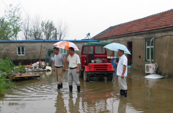 7月9日上午一上班,宋跳農(nóng)場(chǎng)場(chǎng)長(zhǎng)趙懷忠?guī)ьI(lǐng)任志明、駱功勛、孫習(xí)年、于懷前等同志檢查場(chǎng)區(qū)和居民區(qū)。在整個(gè)暴雨過(guò)程中,居民區(qū)房屋沒(méi)有發(fā)生險(xiǎn)情,但地面積水較多,對(duì)個(gè)別居民用電不符合規(guī)范的,要求立即整改。清源水泥制品廠(chǎng)的石棉瓦大棚局部有坍塌危險(xiǎn),該場(chǎng)當(dāng)時(shí)就下發(fā)整改通知單,限期7月20日前完成。農(nóng)戶(hù)棉花地局部受淹,農(nóng)田積水于當(dāng)天下午基本排掉。場(chǎng)區(qū)基本沒(méi)有積水,但辦公室在暴雨過(guò)程中有漫水現(xiàn)象。職工上班后,清掃辦公室衛(wèi)生,陸續(xù)恢復(fù)正常辦公。(任志明)