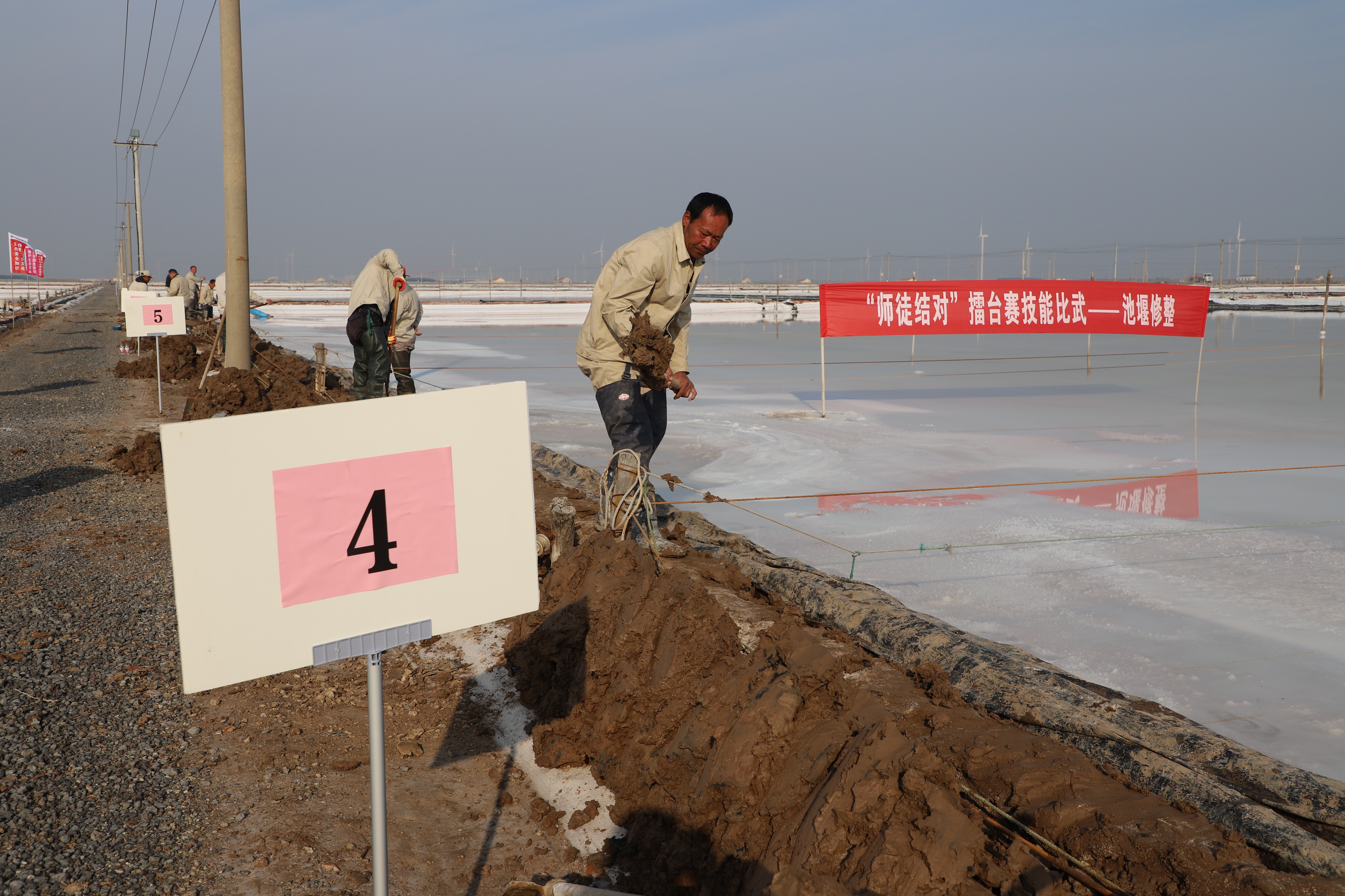 強(qiáng)化灘場(chǎng)文明。實(shí)施池埝修整工程,做到池埝整齊上線;回鹵溝道清淤,確保溝內(nèi)無(wú)淤泥、磚頭、木條等雜物,保證走水暢通;對(duì)結(jié)晶區(qū)倒塌池埝用新熟泥重新做實(shí),更換池埝土工布。實(shí)施土塘清淤工程,每班修整清淤2節(jié)土塘。實(shí)施灘場(chǎng)文明工程,清理生產(chǎn)區(qū)域內(nèi)雜草、垃圾,實(shí)現(xiàn)灘場(chǎng)整潔無(wú)雜物;修理大池道,修整廩基,清潔值班房和收放機(jī)房,收放機(jī)除銹、上漆、上油,物資和工具擺放整齊,確保灘場(chǎng)整潔美觀。