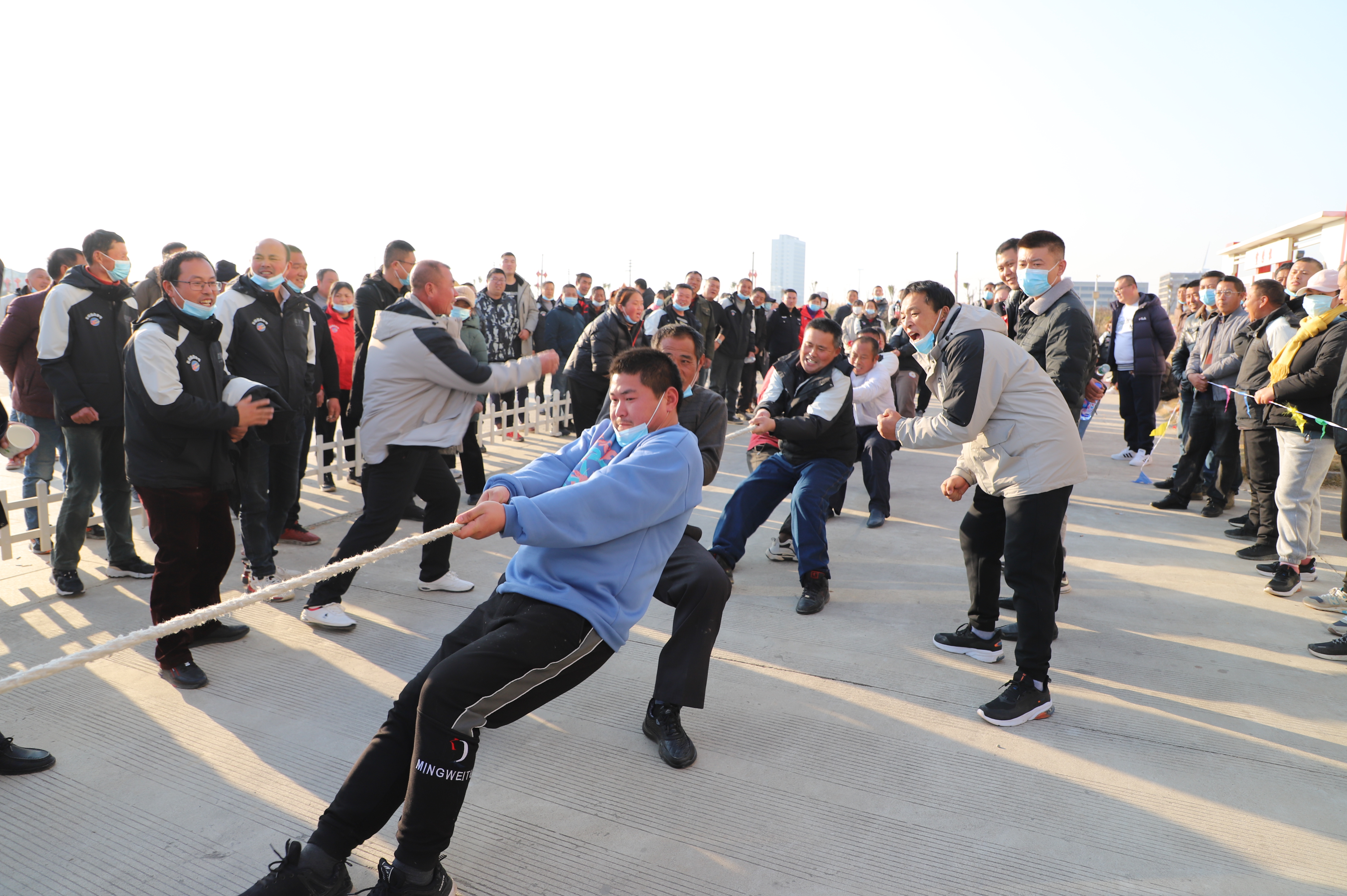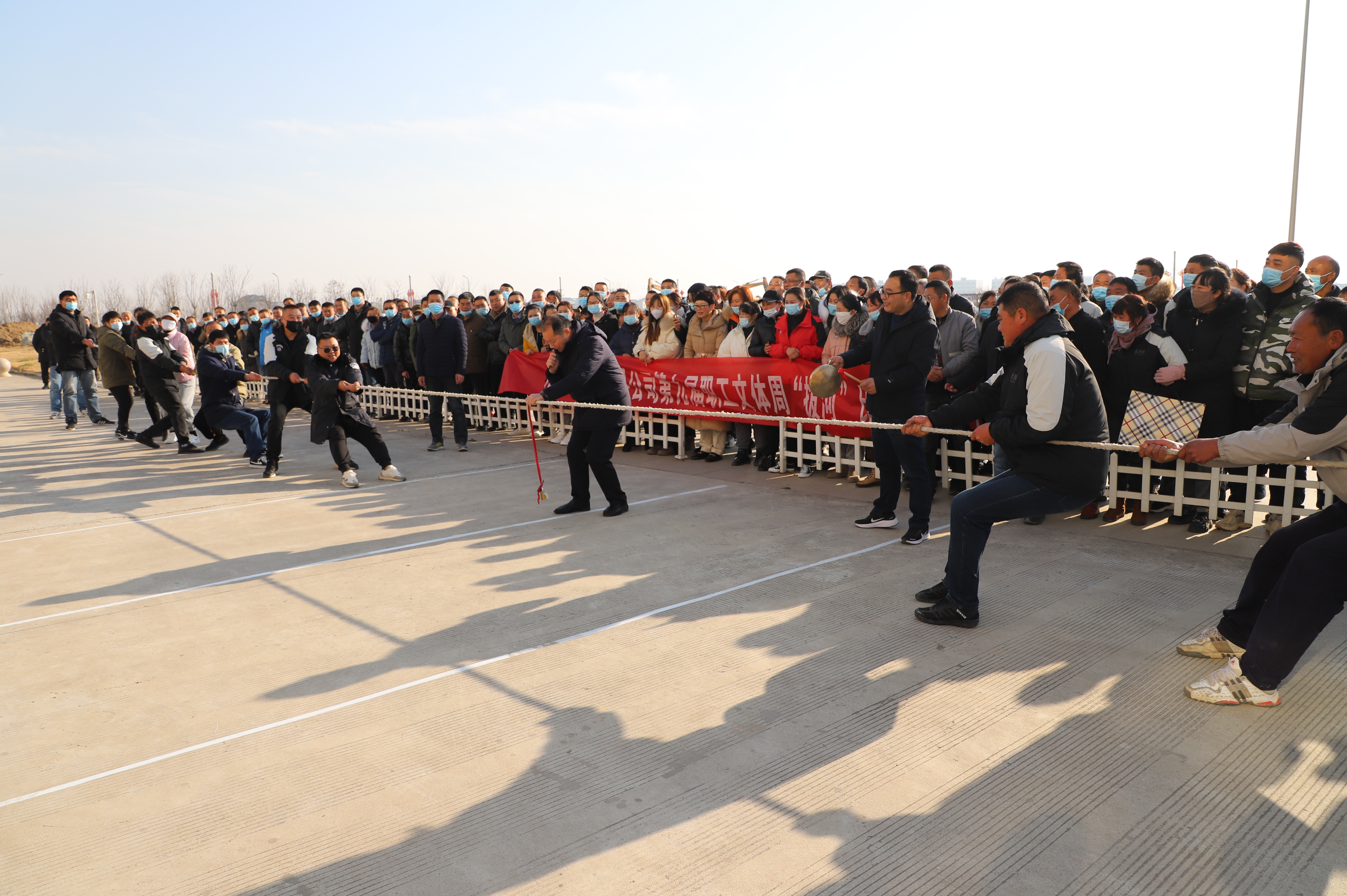開幕式結(jié)束以后,緊張激烈的拔河比賽立即展開。由新河、埓南、宵洋等單位組織的13支參賽隊(duì)伍按照抽簽順序逐一上臺(tái)亮相。賽場(chǎng)上,鼓舞聲、吶喊聲此起彼伏,參賽隊(duì)員們團(tuán)結(jié)協(xié)作、不到最后一刻永不言棄的精神贏得了在場(chǎng)觀眾的陣陣掌聲。經(jīng)過近一個(gè)小時(shí)的激烈角逐,最終埓南制鹽分公司一隊(duì)力壓群雄,奪取拔河比賽第一名,新河制鹽分公司二隊(duì)、新河制鹽分公司一隊(duì)及宵洋物流公司代表隊(duì)分獲二至四名。