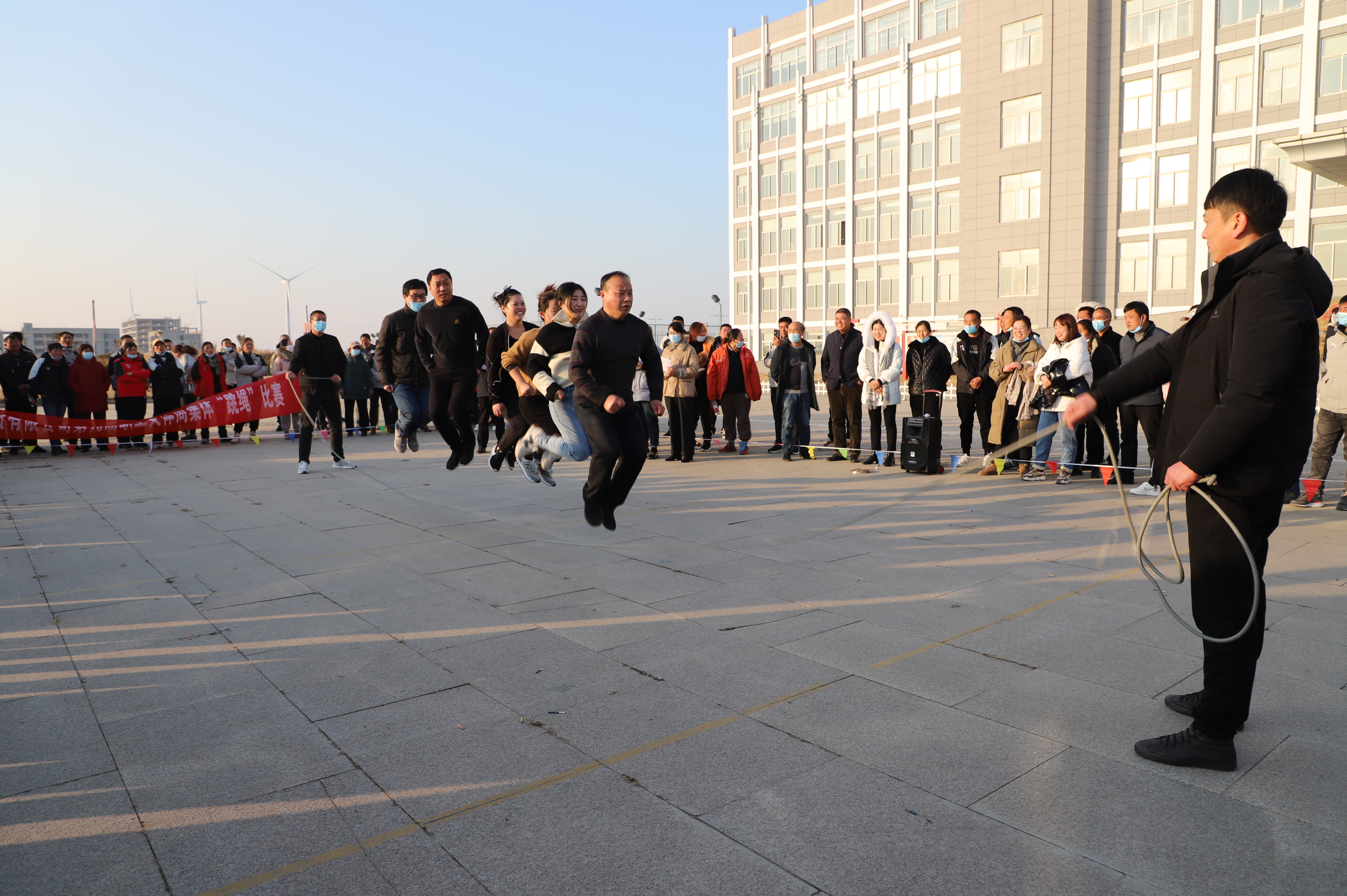 隨后進(jìn)行跳繩比賽,來自南翼、新河、埒南等10支參賽隊(duì)伍逐一上臺(tái)比賽,觀眾隨著場(chǎng)上比賽隊(duì)員跳繩的節(jié)奏,不約而同地打著節(jié)拍、數(shù)著數(shù),最終埒南制鹽公司代表隊(duì)?wèi){借刻苦訓(xùn)練與創(chuàng)新——參賽隊(duì)員手牽手共同協(xié)作,奪得第一名,新河制鹽公司、宵洋物流公司、生產(chǎn)服務(wù)中心分獲二至四名。(西宣)