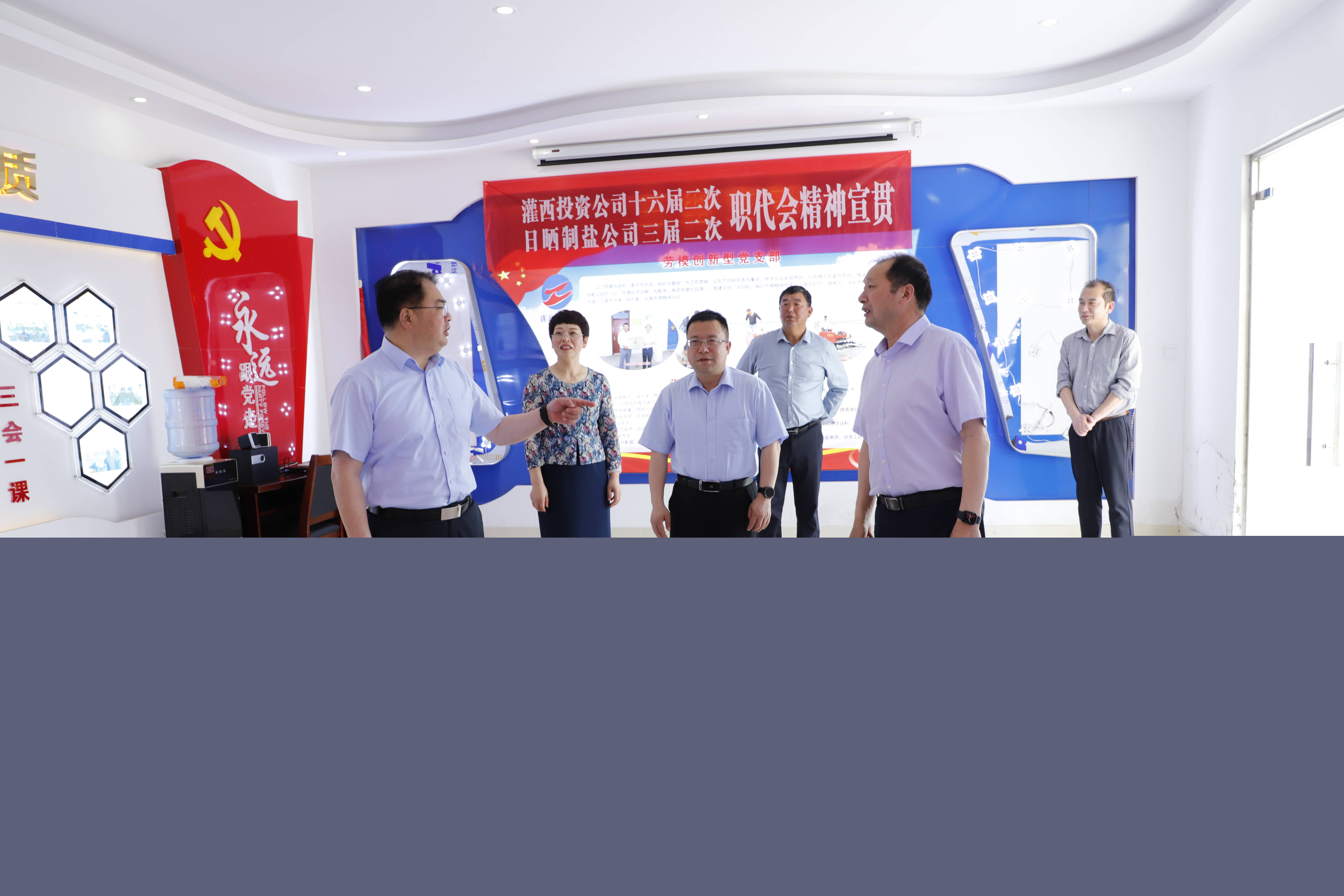 戴鴻鳴書記一行分別到日曬制鹽新河分公司八班的扒鹽現(xiàn)場、零班的班組活動室、新河分公司黨建活動室和安樹林勞模創(chuàng)新工作室實地調(diào)研,對黨建陣地建設(shè)提出指導(dǎo)意見,他指出,基層一線的陣地建設(shè)是企業(yè)文化建設(shè)的重要組成部分,是公司的形象窗口,陣地建設(shè)要因地制宜,打造特色,要進(jìn)一步完善設(shè)計方案,盡快把活動室高標(biāo)準(zhǔn)高質(zhì)量建起來。