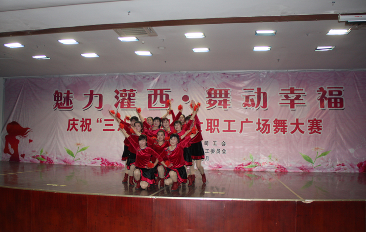 3月8日下午,灌西投資公司第四屆“魅力灌西•舞動(dòng)幸福”廣場(chǎng)舞比賽在灌云縣臨港產(chǎn)業(yè)區(qū)管委會(huì)禮堂舉行,由公司各單位的女工組成的8支代表隊(duì)參加角逐,廣大女工用婀娜的舞姿和精彩的表演慶祝國(guó)際“三八”婦女節(jié)的到來(lái),觀看比賽的職工群眾有400余人。