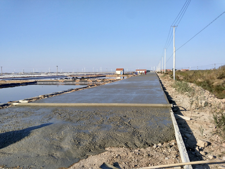 10月30日,在新河制鹽分公司一期0至8班運(yùn)鹽道路上,只見一臺(tái)挖掘機(jī)正在進(jìn)行道路平整工作,遠(yuǎn)處一輛混凝土攪拌車緩緩駛來,幾名工人正操控機(jī)械對(duì)即將凝固的水泥路面進(jìn)行打磨。據(jù)了解,目前正在施工的是新河制鹽分公司一期運(yùn)鹽路升級(jí)改造工程,該工程路段全長(zhǎng)2400米,其中路基6.5米,在原路基基礎(chǔ)上擴(kuò)寬了1.2米,水泥路面6米,便于運(yùn)鹽車輛會(huì)車通行,該工程預(yù)計(jì)將在十一月中旬全部建成。