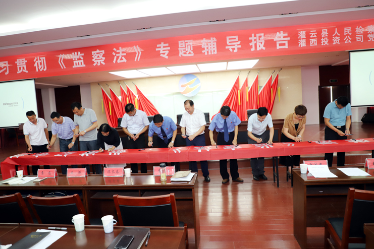 此次集中培訓(xùn)只是我公司深入學(xué)習(xí)貫徹監(jiān)察法的舉措之一,按照公司紀(jì)委統(tǒng)一部署,把監(jiān)察法納入公司干部必修課程及各類(lèi)黨員培訓(xùn)內(nèi)容,通過(guò)座談會(huì)、報(bào)告會(huì)等多種形式,深化學(xué)習(xí)培訓(xùn)效果,把學(xué)習(xí)培訓(xùn)延伸到基層一線(xiàn)。會(huì)后全體與會(huì)人員集體在“學(xué)深學(xué)透《監(jiān)察法》,做遵紀(jì)守法國(guó)企人”橫幅上簽字承諾。(張明建)
