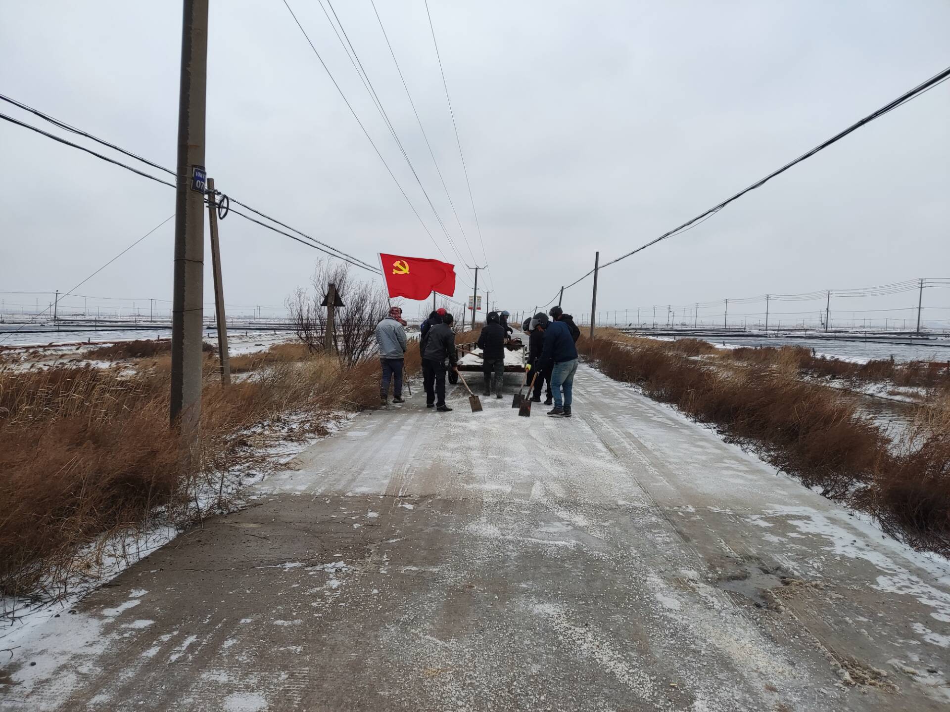 為了確保職工的安全出行,埒南制鹽分公司黨支部的全體黨員帶著鐵鍬、融雪劑,早早地來到現(xiàn)場(chǎng),開始了緊張而有序的除冰工作。他們不畏嚴(yán)寒,奮力鏟除路面的冰雪,讓道路重新變得暢通無阻,確保職工上下班“路路暢通”。(王石)