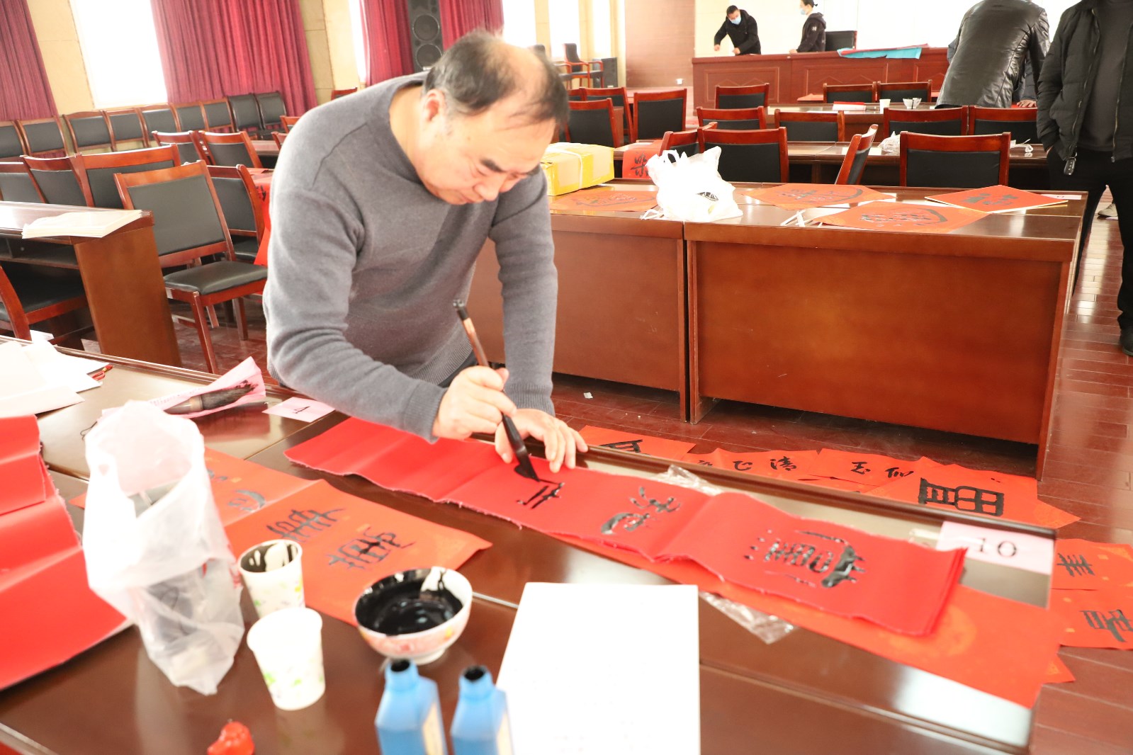 為弘揚(yáng)春節(jié)傳統(tǒng)文化,傳播清風(fēng)廉韻,讓“廉味”守住“年味”,守好“節(jié)點(diǎn)”過“廉節(jié)”,1月25日,灌西投資公司紀(jì)委在機(jī)關(guān)五樓開展“有嚴(yán)有味”迎新年書寫“廉”聯(lián)活動,邀請到縣書協(xié)書法名家現(xiàn)場揮毫潑墨,把年俗文化、清廉文化等文化資源進(jìn)行串聯(lián),為廣大黨員干部群眾送上了一道別具“廉味”和“年味”的新春文化盛宴。