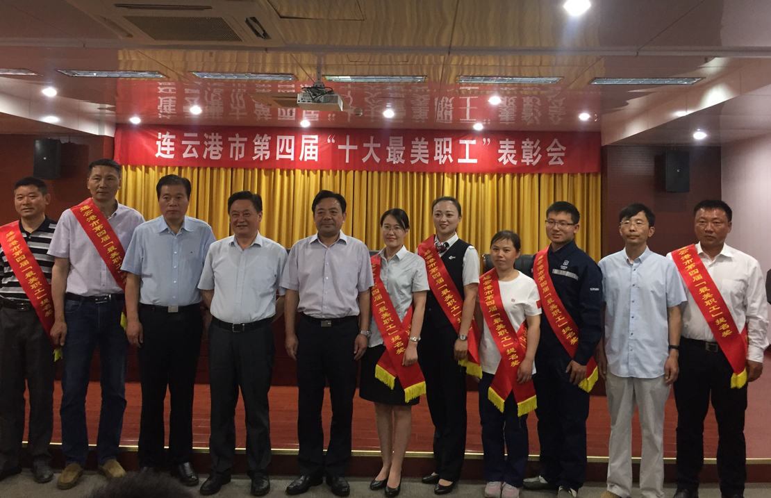 近日,在連云港市第四屆港城“十大最美職工”表彰會(huì)上,日曬制鹽新河分公司八班班長祝星星榮獲“十大最美職工”提名獎(jiǎng)。在表彰會(huì)上,市總工會(huì)主席鄭平、丁維杰書記、宣傳部副部長李超領(lǐng)導(dǎo)與獲獎(jiǎng)人員一起合影留念。