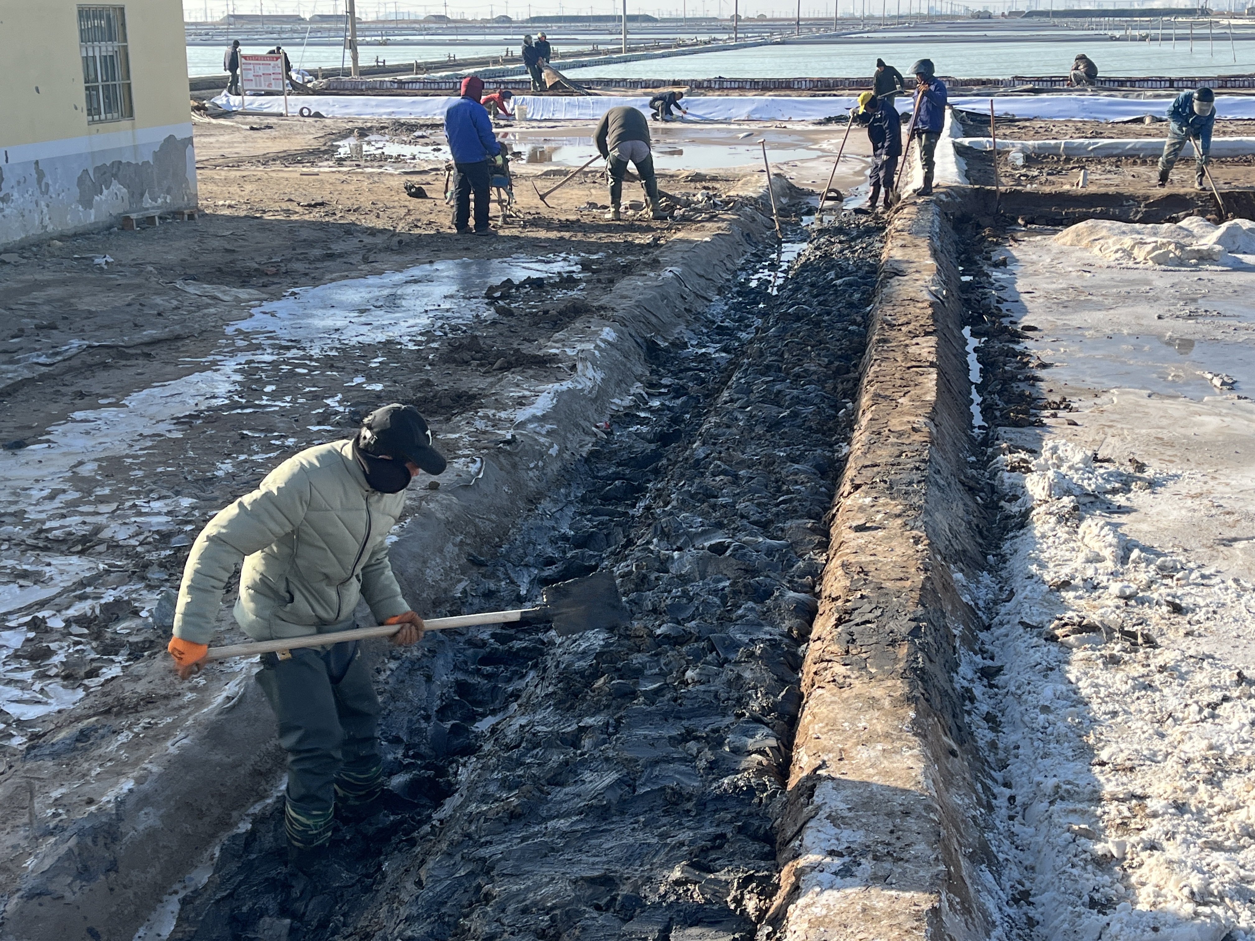 冬季是我們?nèi)諘裰汽}收儲鹵水、扒土塘、整理灘場文明的最佳時期,也是為2024年工作起好頭,邁好步的關鍵時期,作為重擔我先挑,沖鋒我在前,充分調動一切積極因素,咬定目標,盡最大努力為班組創(chuàng)造良好的工作條件,發(fā)揮每一個班組的最大潛能,確保越冬鹵水除硫率達到95%以上;鹵水接受率100%;長鹽4萬噸;氯化鈉含純96.2%以上;單耗控制在4.2立方/噸以內(nèi);硫酸根含量控制在0.35%以下,抓好冬季風性咬制鹵水;安全生產(chǎn)無事故。對任務的完成情況做到每周有安排,每周有總結,確保各項工作按部、有序、穩(wěn)定向前推進。成立“指揮部”掛圖作戰(zhàn),打好冬準戰(zhàn)役:各班組按照標準化、規(guī)范化建設池埝,精心修復結晶池堵頭埝截,修整池埝150余條,1.28萬余米;