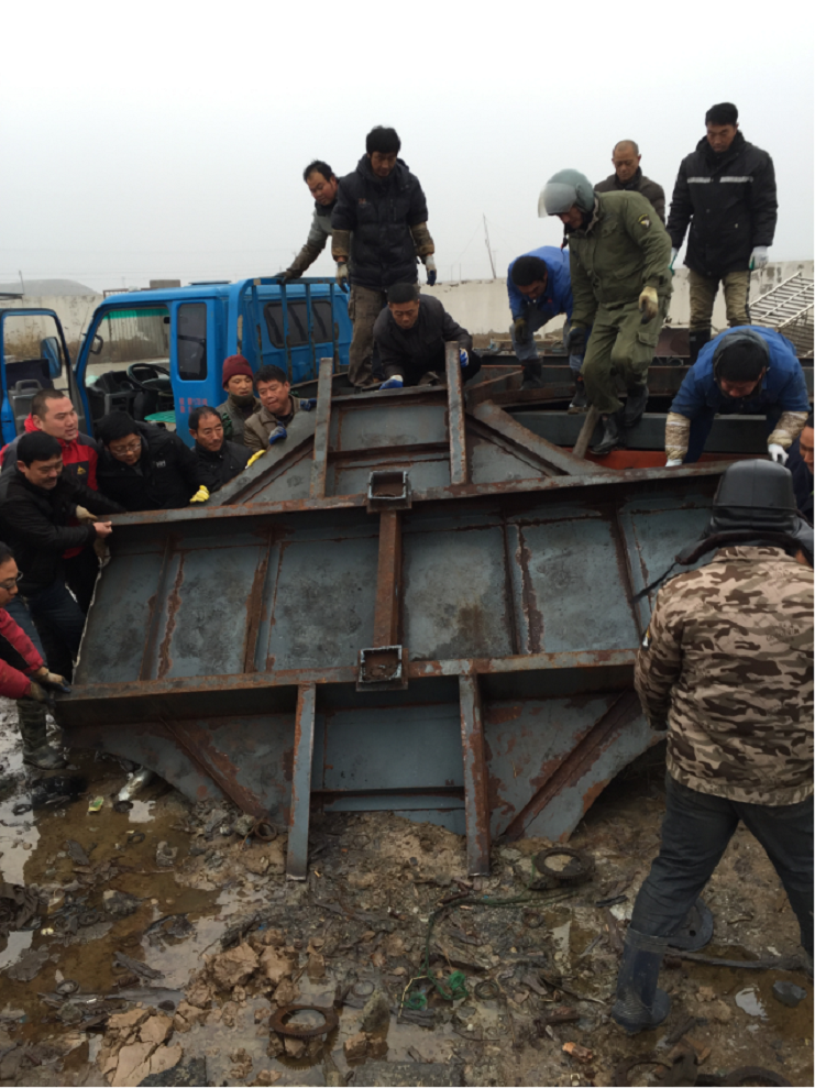 (上圖為標準化廠房的廢棄鋼材運送到日曬制鹽3場后家院,機械設(shè)備服務(wù)中心職工一起搬運鋼材。)