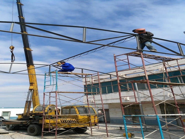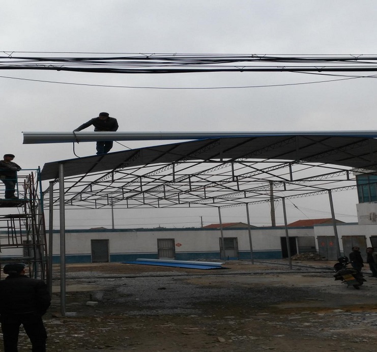 自4月初承接我場(chǎng)中二圩愛心市場(chǎng)大棚制作任務(wù)后,機(jī)電服務(wù)公司班子認(rèn)真進(jìn)行研究制作方案,購買優(yōu)質(zhì)材料,合理安排技術(shù)人員進(jìn)行制作,做到多頭并進(jìn),加班加點(diǎn),勞模王緒華、星級(jí)員工程洪連身先士卒,其他員工積極參與,到4月19日,全面、安全完成制作安裝任務(wù)。(圖為現(xiàn)場(chǎng)施工中)(胡亞東)