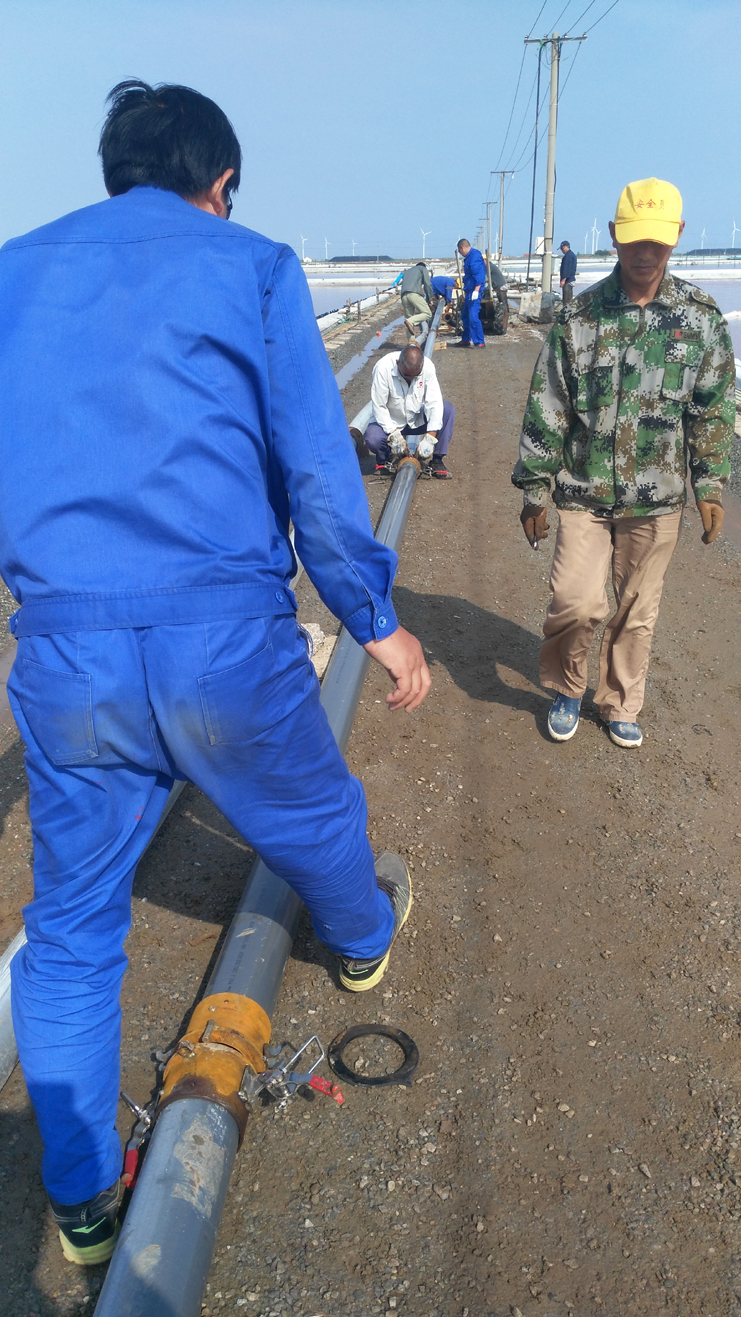 為節(jié)省扒鹽管道拆、裝時間,提高扒鹽速度,減輕扒鹽人員負荷,6月11日上午機電服務公司新制快接管道在埒南制鹽公司11班進行現(xiàn)場實踐。他們放棄休息日,制作人員全員參與,市勞模王緒華、一星級員工程洪連、黨員楊軍,他們個個不怕臟和累,經過一個多小時操作,管道安裝結束,在幾次調試后,扒鹽機組運行正常。該快速接頭優(yōu)點是安裝、拆解快捷,節(jié)約成本,不足是皮墊易漏鹵。通過此次試運行,對不足之處,該公司將繼續(xù)研究,爭取早日投入鹽業(yè)生產,創(chuàng)造效益。(機電服務公司)