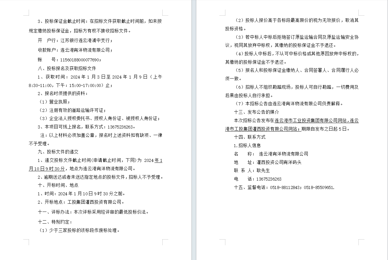 連云港宵洋物流有限公司原鹽車輛 異地轉運業(yè)務招標公告(二次)