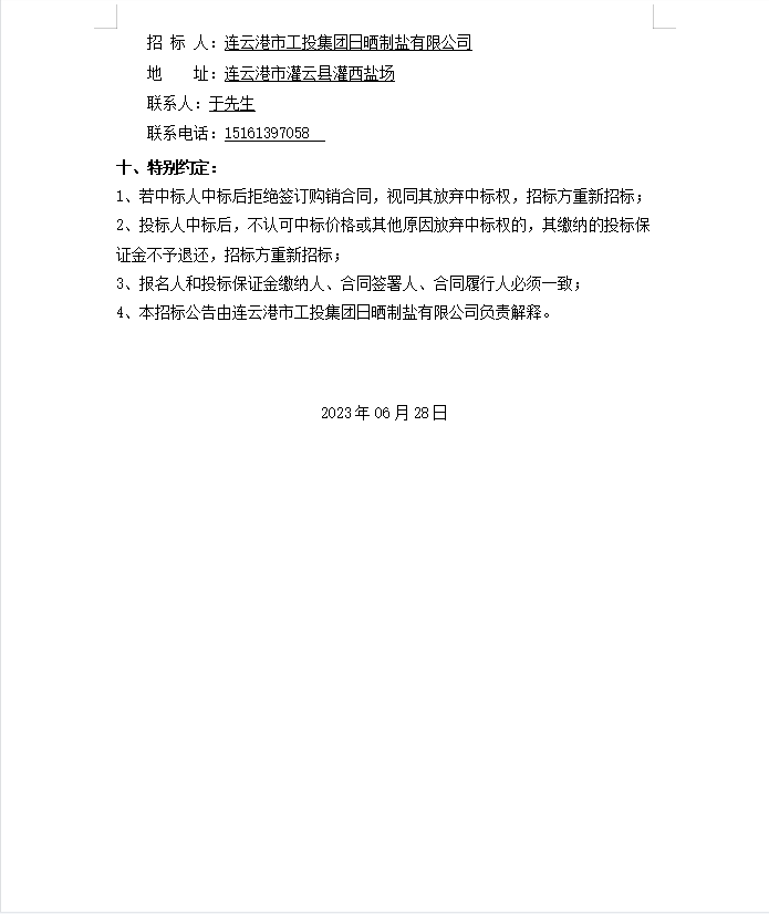 連云港市工投集團日曬制鹽有限公司漏電斷路器等物資招標(biāo)公告