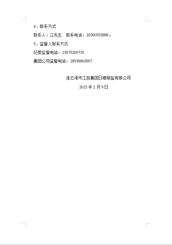 連云港市工投集團(tuán)日曬制鹽有限公司2023年度員工防寒工作服采購(gòu)項(xiàng)目邀請(qǐng)招標(biāo)中標(biāo)候選人公示