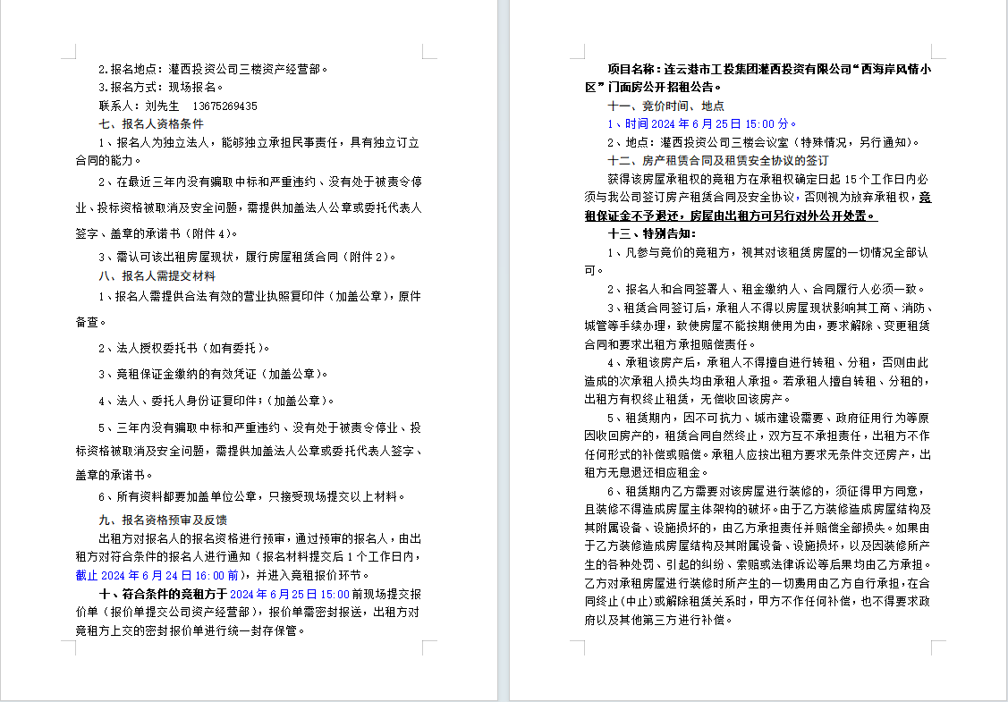 連云港市工投集團灌西投資有限公司“西海岸風(fēng)情小區(qū)”門面房公開招租公告