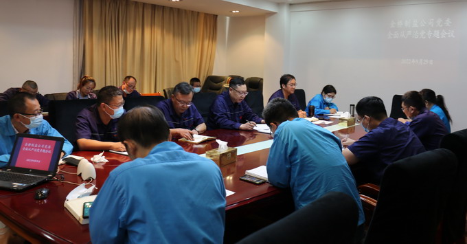 9月29日下午,我公司黨委召開全面從嚴(yán)治黨專題會議,黨委副書記、紀(jì)委書記、工會主席曹開明主持,公司領(lǐng)導(dǎo)班子成員、各車間單位黨政負(fù)責(zé)人、各部室負(fù)責(zé)人參會。