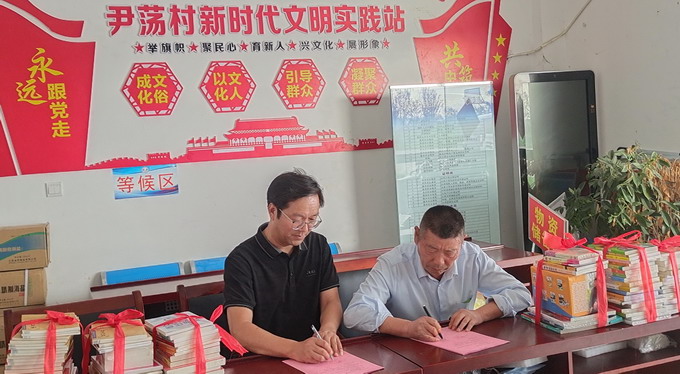 公司黨委副書記、紀(jì)委書記、工會(huì)主席曹開(kāi)明,灌南縣北陳集鎮(zhèn)尹蕩村黨總支書記孫克玉代表共建雙方續(xù)簽共建協(xié)議;向該村贈(zèng)送了名人傳記、農(nóng)技推廣和文學(xué)藝術(shù)等各類圖書100余冊(cè),向鄉(xiāng)民贈(zèng)送了文明共建紀(jì)念品;參觀了該村黨員活動(dòng)室、黨史室、村史陳列室,聽(tīng)取了孫克玉對(duì)該村概況的介紹。