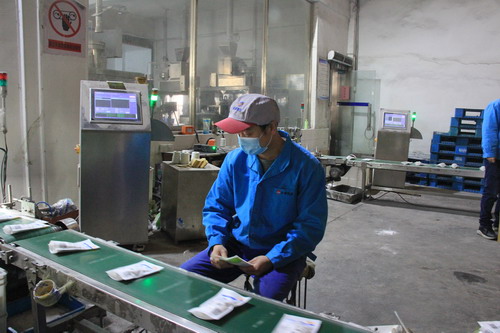 包裝鹽車間生產(chǎn)班長王東海巡視生產(chǎn)線