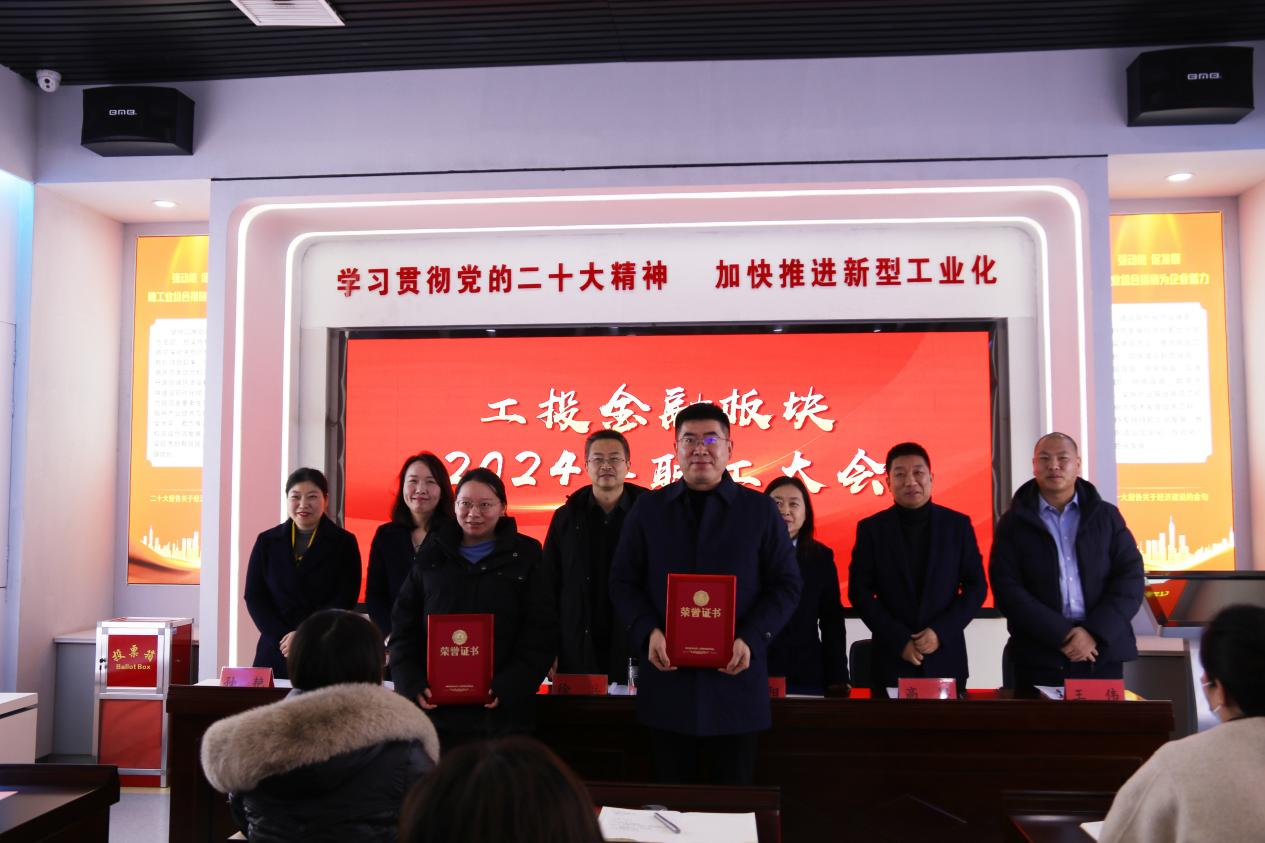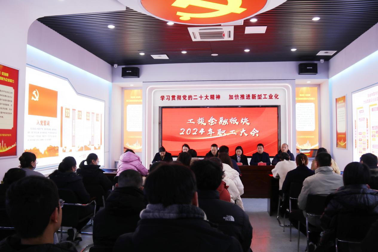2024年1月19日下午,工投金融板塊隆重召開了2024年職工大會。全體在崗員工參加大會。黨支部書記、董事長徐兵主持會議。