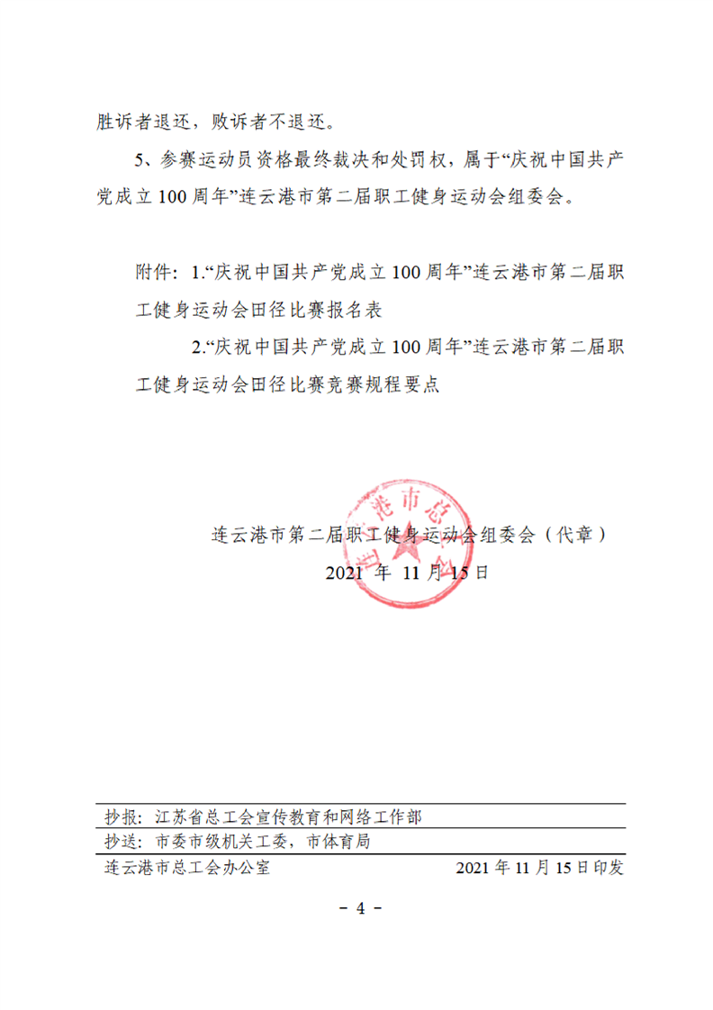 連云港市第二屆職工健身運(yùn)動(dòng)會(huì)田徑比賽的補(bǔ)充通知