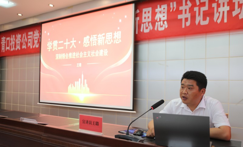 為深入學習宣傳貫徹黨的二十大精神,通過“學”精神、“講”精神、“用”精神,迅速把廣大黨員干部的思想和行動統(tǒng)一到黨的二十大精神上來,5月16日下午,青口投資公司“學貫二十大 感悟新思想”書記講壇火熱開講。公司在家領(lǐng)導,基層黨支部書記、分會主席以及機關(guān)全體管理人員參加。