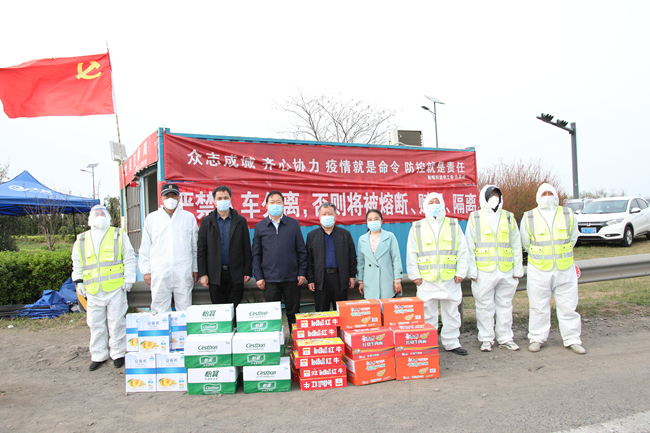 4月14日下午,青口公司黨委副書記、工會主席梁永,副總經(jīng)理楊守明前往高速出入口檢查檢疫卡點,為黃沙坨社區(qū)防疫一線工作人員以及下沉社區(qū)的公司黨員志愿者送上慰問品,傳達(dá)組織的關(guān)心關(guān)愛。