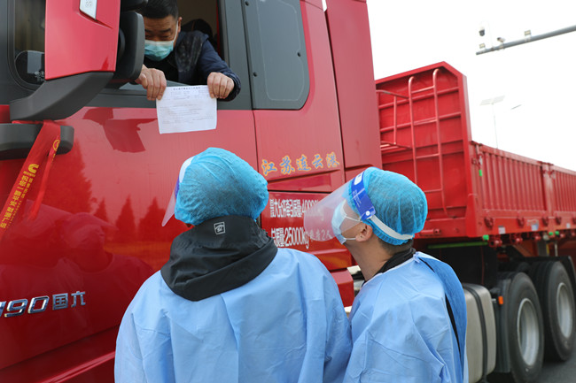 “您好!請出示一下行程碼、健康碼、核酸檢測陰性證明。”4月8日上午七點(diǎn),青口公司黨員志愿者已經(jīng)開啟一天的工作,對大貨車進(jìn)行逐一排查,對不符合過境條件的司機(jī)立即勸返。