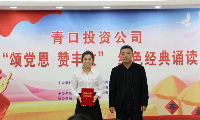 “那個(gè)夜晚,我在臺(tái)燈下,讀著抗戰(zhàn)英雄的故事。為那些英雄的故事而感動(dòng)著、而震撼著……他們的靈魂不朽,依然在我們的血液里奔流?!痹凇绊烖h恩、贊豐收”紅色經(jīng)典誦讀中,一篇《不朽》為青口投資公司第二屆豐收節(jié)畫上圓滿句號(hào)。