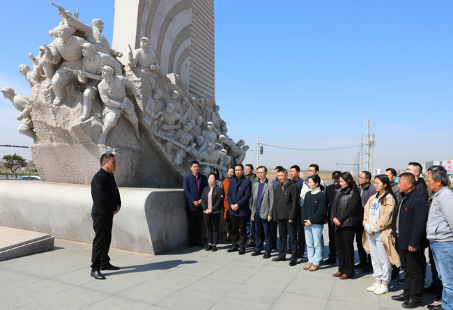 在紀念碑前,黨委書記史祥平同大家一起詳細回顧了中國共產黨的光輝歷史。他指出,這次活動是一次感悟黨史、砥礪初心使命的黨史學習教育,要深刻領悟今天的幸福生活來之不易,弘揚英烈精神,賡續(xù)精神血脈,進一步砥礪優(yōu)良作風,彰顯擔當之能,鑒往知來、繼往開來,感恩先輩先烈的奮斗犧牲,珍惜來之不易的發(fā)展局面,保持“拼、搶、實”的狀態(tài)和作風,主動作為、奮發(fā)有為、擔當善為,為公司高質量發(fā)展作出更大貢獻。(青 宣)