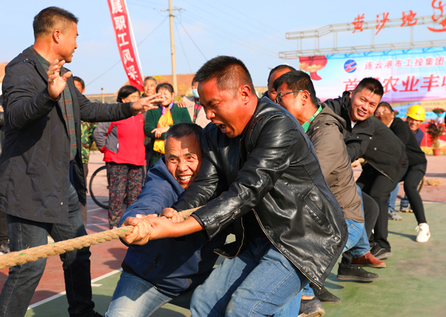 廣場(chǎng)上不時(shí)傳來“加油、加油”的聲音,一場(chǎng)激烈的拔河比賽拉開了農(nóng)業(yè)豐收節(jié)的序幕。