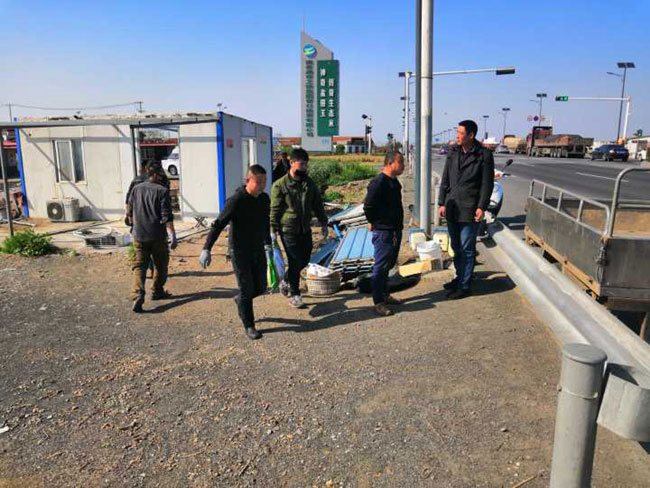 公司領(lǐng)導(dǎo)態(tài)度明確,一抓到底全面整治交通環(huán)境。摸清形勢,多次召開整治工作專項(xiàng)會(huì)議,安排部署整治行動(dòng) , 公司領(lǐng)導(dǎo)放棄節(jié)假日,現(xiàn)場辦公。三洋、黃沙、大新作為主要牽頭單位,主動(dòng)扛起責(zé)任,挑起擔(dān)子,從泰祥公司抽調(diào)人力,大家齊心協(xié)力。按照時(shí)間節(jié)點(diǎn),倒排工期,掛圖作戰(zhàn),針對現(xiàn)場工作內(nèi)容,制定 “三步工作法”。一是深入塘頭養(yǎng)殖戶面對面交流,講明利害關(guān)系,做通群眾思想工作,確保整治行動(dòng)順利進(jìn)行;二 是 制定好拆除先后順序,調(diào)配需要的挖掘機(jī)、運(yùn)輸車輛等硬件設(shè)施,確保拆遷過程快速有力;三 是 對于已拆除的看護(hù)房,及時(shí)清理房屋碎石塊,筑牢地基,安排重建。