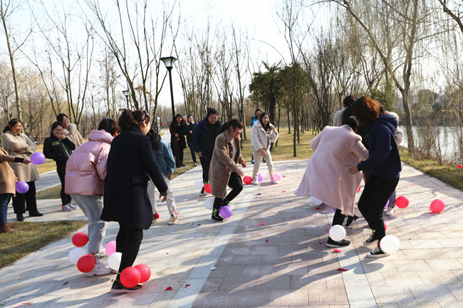 為使大家身心得到最大放松,投入戶外體驗(yàn)清新大自然,在絲路小鎮(zhèn)公園進(jìn)行了“三月女人天 別樣?jì)D女節(jié)”主題戶外活動(dòng)。游戲“你畫我猜”中,隊(duì)員們有的配合默契一猜既中,也有的用肢體艱難的比劃著,引的大家捧腹大笑?!安葰馇颉庇螒蚋亲尙F(xiàn)場(chǎng)氣氛達(dá)到沸點(diǎn),每人都放開平日工作中的嚴(yán)謹(jǐn),放松心情在場(chǎng)地上追逐奔跑。大家在游戲中收獲了歡聲笑語(yǔ)及片片感動(dòng),同時(shí),通過(guò)游戲提高大家的合作意識(shí)和進(jìn)取精神,營(yíng)造濃郁節(jié)日氣氛。