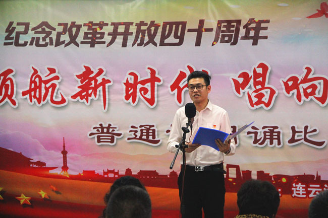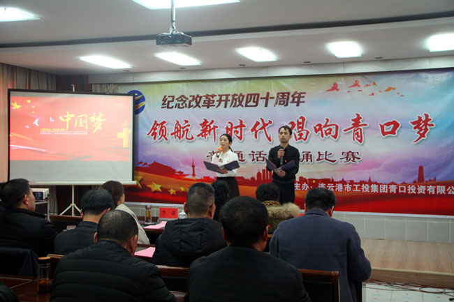 為了紀(jì)念改革開放四十周年,引導(dǎo)和激勵(lì)廣大職工圍繞 “高質(zhì)發(fā)展、后發(fā)先至”主題主線,為建設(shè)“強(qiáng)富美高”新青口、開啟青口發(fā)展新征程貢獻(xiàn)力量。12月11日下午,青口公司黨委隆重舉行“領(lǐng)航新時(shí)代 唱響青口夢”紀(jì)念改革開放40周年普通話朗誦比賽?;顒?dòng)邀請到連云港市語委辦副主任、詩朗誦藝術(shù)家協(xié)會(huì)副主席朱衛(wèi)文,國家級普通話測試員、市朗誦藝術(shù)家協(xié)會(huì)副秘書長李蕾、主任播音員、市朗誦藝術(shù)家協(xié)會(huì)副主席朱平擔(dān)任評委。公司領(lǐng)導(dǎo)班子 及 全體管理人員參加活動(dòng)