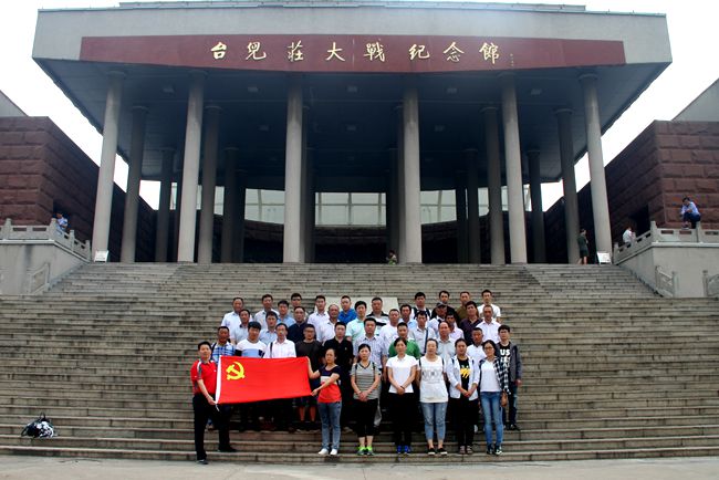 在臺(tái)兒莊大戰(zhàn)紀(jì)念館中,黨員們聽取講解員介紹了臺(tái)兒莊大捷的整個(gè)過程。觀看了展覽館、書畫館、全景畫館,一件件戰(zhàn)時(shí)實(shí)物、一張張黑白照片、一個(gè)人個(gè)感人肺腑的故事,再現(xiàn)了當(dāng)年全國軍民同仇敵愾、共御外侮的歷史和不屈不撓、誓死抗擊日寇的民族精神,這次戰(zhàn)役是抗日戰(zhàn)爭以來取得的最大勝利,打擊了日本侵略者的囂張氣焰,堅(jiān)定了全國軍民堅(jiān)持抗戰(zhàn)的信心。黨員們受到了深刻的教育,民族自豪感油然而生,來到紀(jì)念館前莊嚴(yán)肅立,面朝鮮紅黨旗,重溫了入黨誓詞。