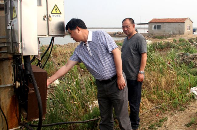 6月21日,公司董事長(zhǎng)、黨委書記胡傳法到 所屬 聯(lián)系點(diǎn)三洋、黃沙分場(chǎng)的付河碼頭排淡河啟閉閘、十八圩池塘用變電箱等處集中突擊 檢 查安全和防汛。