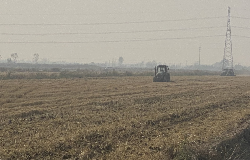 近日,在大新農(nóng)場的農(nóng)田里,機(jī)聲隆隆,幾臺大型農(nóng)機(jī)拖著旋轉(zhuǎn)的滾輪正在作業(yè),切碎土塊,并將埋在地表下的水稻根茬切碎,疏松土壤,為接下來的冬小麥播種做準(zhǔn)備。(王璐)