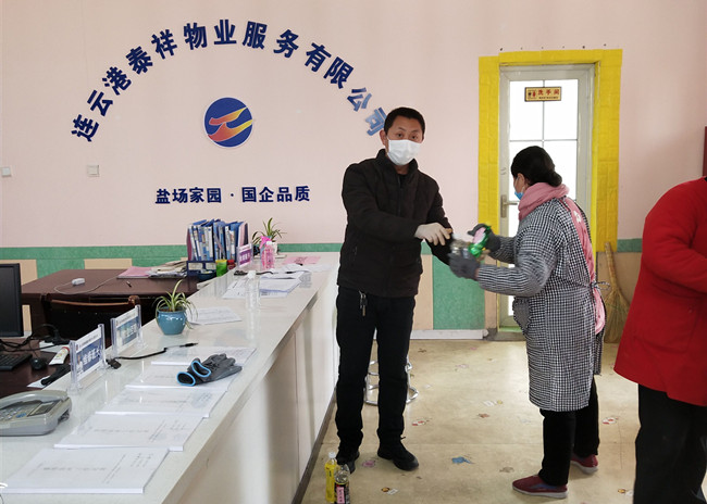 自新型冠狀病毒感染的肺炎疫情發(fā)生以來(lái),泰祥公司所有的保潔、保安堅(jiān)守崗位,兢兢業(yè)業(yè),奮戰(zhàn)在疫情防控工作的第一線。為了確保他們的身體健康并感謝他們家人的理解,在消毒液緊缺的情況下,公司率先錯(cuò)時(shí)為他們發(fā)放酒精和84消毒水,并及時(shí)告知使用酒精和84消毒水的注意事項(xiàng)。(趙萌萌)