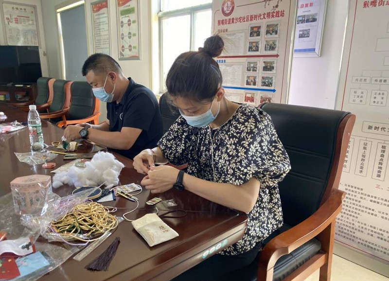 活動(dòng)現(xiàn)場(chǎng)粽葉飄香,參加活動(dòng)的人員早早準(zhǔn)備好糯米、粽葉、紅棗等,又提前泡好米、洗好粽葉,未待人到齊,每個(gè)人就迫不及待的各顯身手。盡管大家技術(shù)水平參差不齊,但濃郁的節(jié)日氛圍讓現(xiàn)場(chǎng)歡聲笑語(yǔ)不斷,老師傅個(gè)個(gè)拿出看家本領(lǐng),手把手教徒弟,老手帶新手,大家齊動(dòng)手,邊包粽子邊分享交流。包粽子活動(dòng)結(jié)束后,又開(kāi)展了繡香包活動(dòng)。