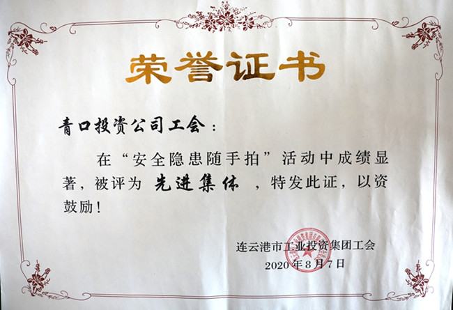 ? 集團(tuán)公司工會(huì)5月以來(lái)開(kāi)展了“安全隱患隨手拍,合保安康你我他”為主題的“安全隱患隨手拍”活動(dòng),青口工會(huì)廣泛宣傳,組織廣大職工積極參與,期間共收到職工“隨手拍”作品近二十件,并上報(bào)集團(tuán)公司參加比賽,經(jīng)上級(jí)專家評(píng)審,我公司工會(huì)被評(píng)為“先進(jìn)集體”,鄭江作品《安全線》獲得優(yōu)秀作品獎(jiǎng)。