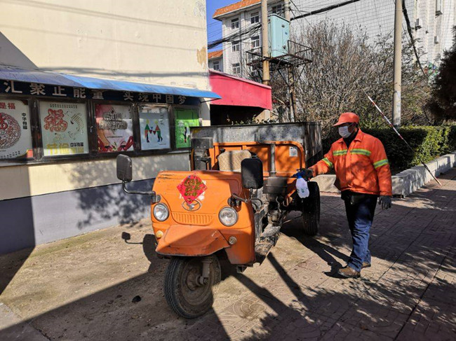 “回家吃完早飯?jiān)倮^續(xù)清掃!”——多么樸實(shí)無(wú)華的聲音從環(huán)衛(wèi)工人戴著口罩的笑容下發(fā)出,這是來(lái)自生產(chǎn)生活服務(wù)中心環(huán)衛(wèi)班組的響亮聲音。
