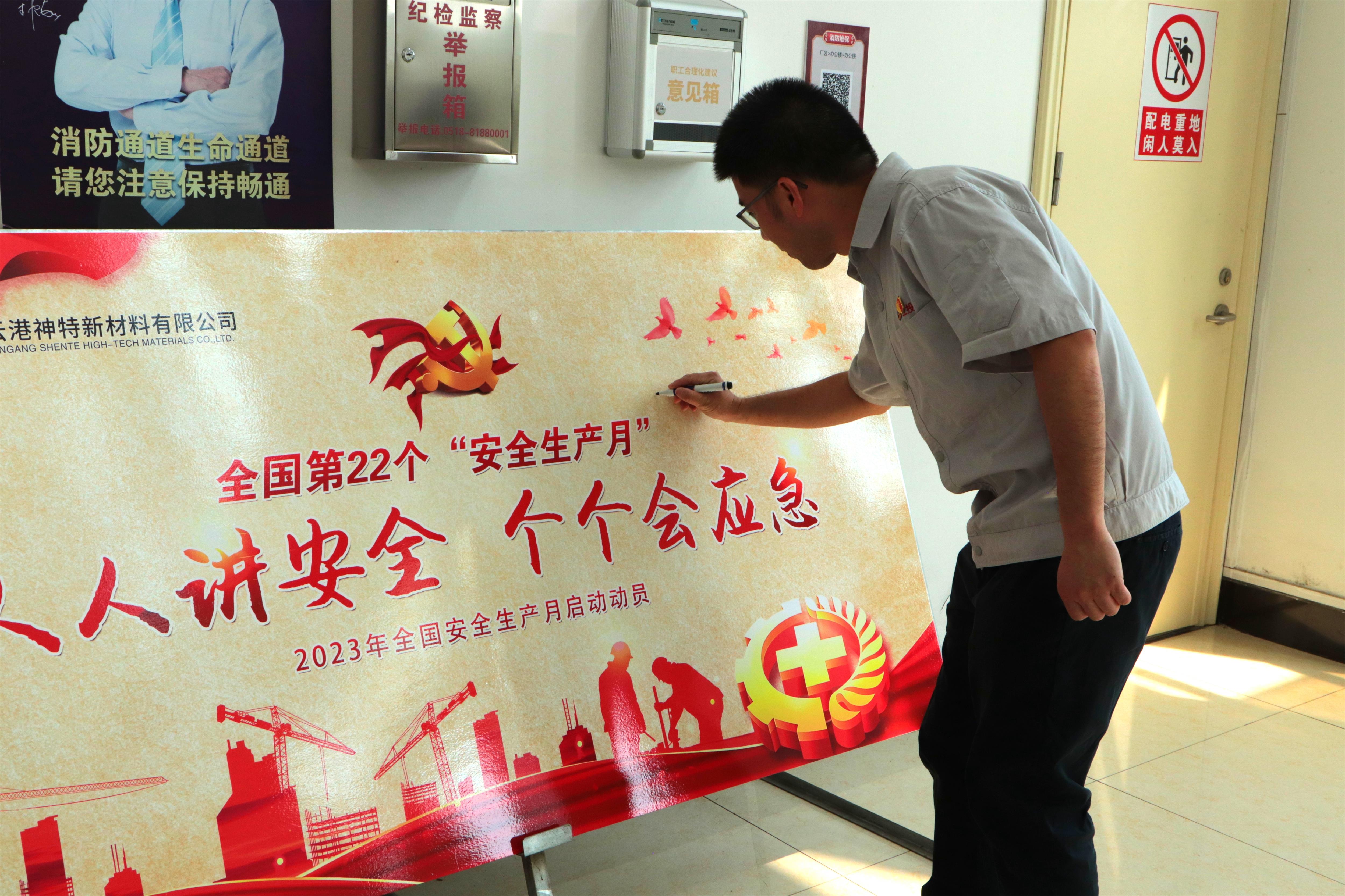 會(huì)后,參會(huì)人員在“安全生產(chǎn)月”簽名墻上鄭重簽名承諾。(毛廣江)
