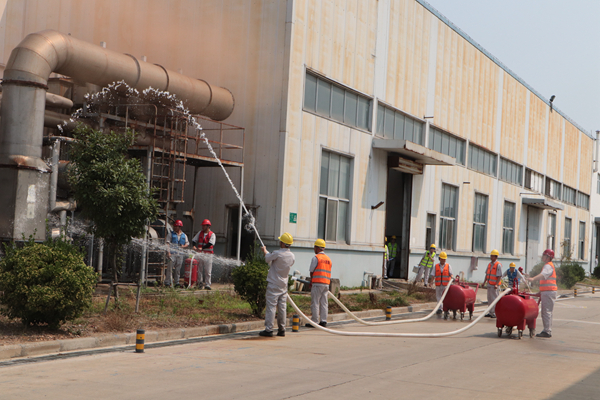 為進(jìn)一步提高一線員工自救防范能力,檢驗應(yīng)急預(yù)案的可行性,6月24日上午,公司開展消防應(yīng)急救援比賽,集團(tuán)公司安全總監(jiān)胥廣會、公司領(lǐng)導(dǎo)班子成員作為評委觀摩比賽。