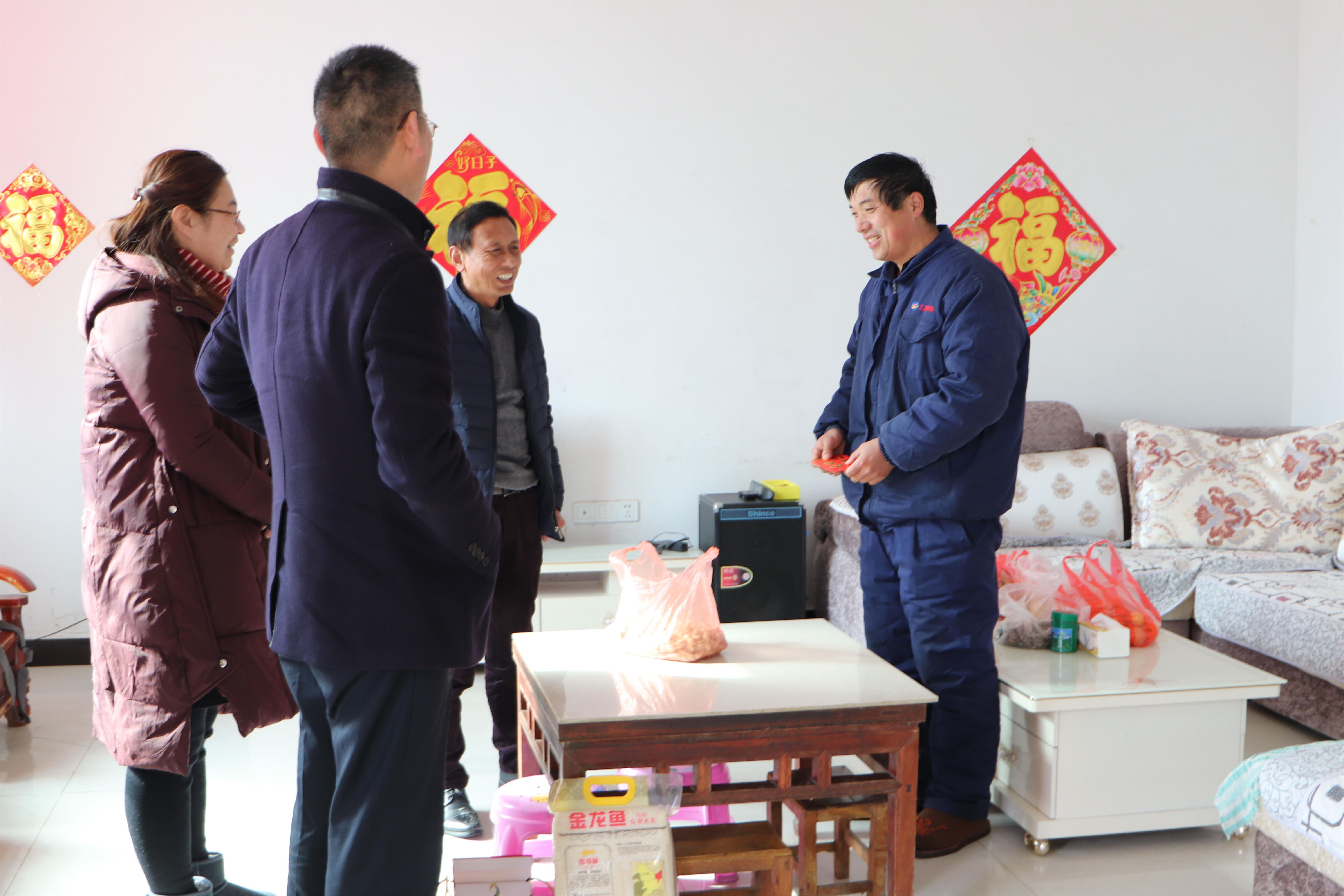 1月31日下午,公司黨支部書記鄒德兵、副總經(jīng)理王爽芳、工會主席袁忠一行走進困難職工孫英山等家中,為他們帶去節(jié)日的祝福和公司的關懷。