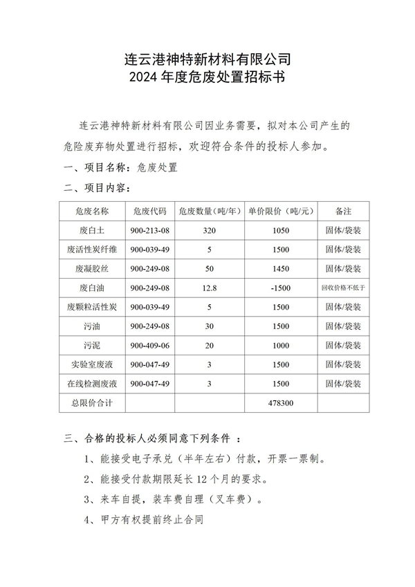 神特公司2024年危廢處置邀請(qǐng)招標(biāo)公告